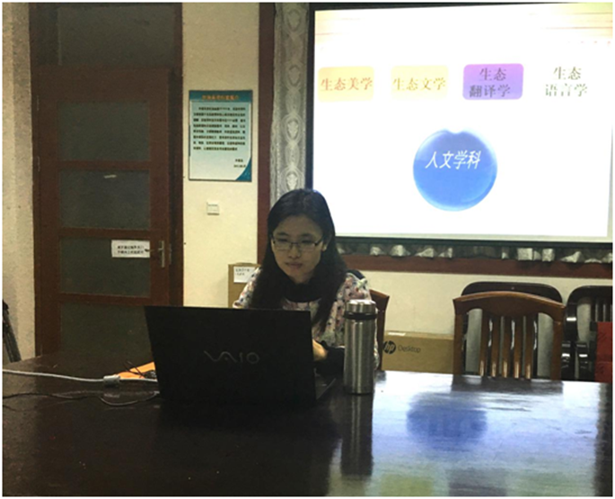 朱老师从“生态语言学”的“前世今生”入手,简单介绍了生态语言学研究的发展历程,细阐述了“生态语言学”的定义,着重介绍了这一领域的两种研究模式:豪根模式和韩礼德模式。朱老师从国内外生态语言学相关学术组织及活动、国内外生态语言学研究的、主要方向,以及生态语言学研究的主要课题等方面系统而完整地总结了“国内外的研究现状”。同时,朱老师根据自己的研究指出了目前国内在该领域研究中存在的问题和研究的主要方向。讲座结束之后,在场教师结合自己的专业和对主题的理解与主讲老师进行了热烈地讨论。