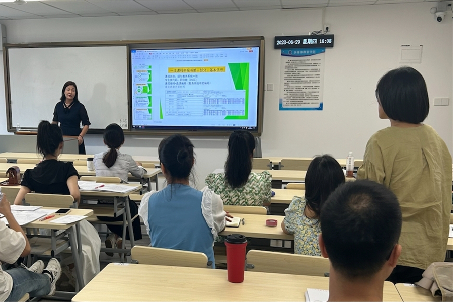 马海燕结合自身及所在学校成功申报国家一流本科专业和一流本科课程的经验,先从宏观上介绍了一流专业建设的原则及一流课程的课程要求,再从微观上剖析地方院校在国家一流专业和一流课程申报过程中的注意事项,结合项目申报书的栏目,细致地讲解了国家一流本科专业和一流本科课程申报书撰写的要点、难点和注意事项。马海燕还分享了她通过混合式教学在教学设计及教学法方面的创新及成果,为教师们在教学内容的选择及混合课堂的实施提供了新思路。在场的教师纷纷表示受益良多,并就一流课程申报的要求、混合式课程的课时设计、教学大纲设计、课堂成果形式等展开了热烈地讨论与交流。教师们收获了国家一流专业和一流课程建设的方法指导,对自身课程建设有了更深入的思考和更为明确的目标。