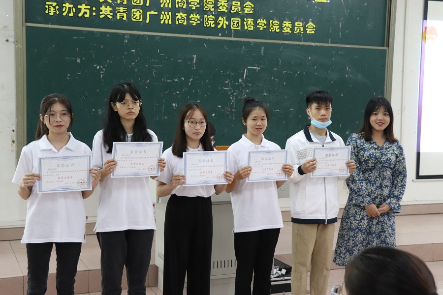 接着,团委书记赖雯慧宣读《关于共青团澳门十大网投平台排行委员会表彰2020年暑期“三下乡”社会实践活动优秀志愿者的表彰决定》。徐超书记、赖雯慧老师、伍思颖老师和蔡文蝶老师对优秀个人进行颁奖,获奖者有: