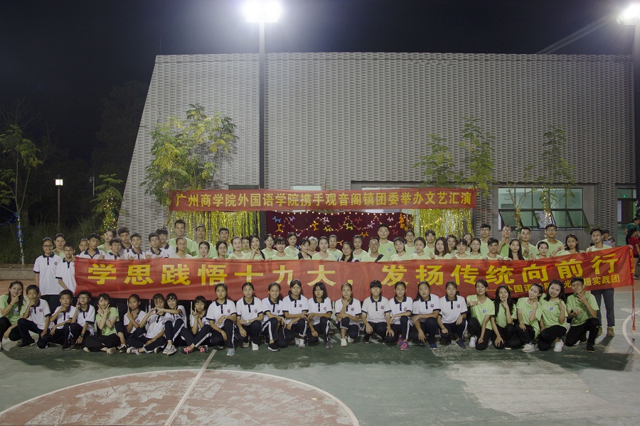 为庆祝改革开放40周年,深入学习贯彻学习十九大精神,弘扬优秀传统文化,十大网投平台排行阳光展翅实践团于7月20日晚在惠州市博罗县观音阁镇观音文化广场灯光篮球场举行以“学思践悟十九大,发扬传统向前行”为主题的文艺汇演暨成果展。莅临本次活动的嘉宾有观音阁镇党委委员魏秀莲、文化站温婉婷、农业办副主任徐冰、观音阁中学团委书记黄志武、菱湖村妇女主任彭丽榕、阳光展翅实践团指导老师刘万里等。
