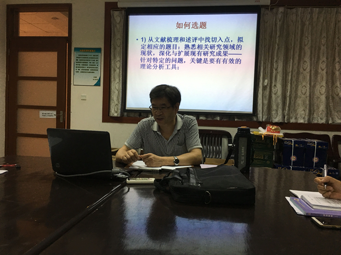 除了站稳讲台上好每一门课,论文撰写发表、职称评定晋升是教师职业发展中一个至关重要的课题。就如何有效选题、写好富有学术性和科学性的高质量论文,曾利沙有见地提出五个要点。第一、选题。如何选出新颖、有创意、吸引眼球并能解决现实问题的题目对于成功中标课题非常关键。曾教授结合自己多年丰富的教学经验和丰硕的研究成果,提出可从梳理文献述评、阅读学术期刊专题栏目、挖掘现象中具有普遍意义的、带有方法论意义的素材、批判性研读论文或问题-导向型研究中发现、甄别、获取有创意性的论题。第二、撰写。教师们要明确自身需求,制定阶段性和长期目标,细致深入观察,厚实理论基础,明确选题——语料收集——案例典型——个案分析——分类概括——理论提升——规律阐发——以点拓面。第三、论文的质量。论文的档次要求高,发表在本学科学术理论权威性刊物或核心期刊;论文要有质量,深入探讨某个范畴或模式的相关理论与运用问题;同时论文数量争取每年1篇(外语)核心论文和1-2篇一般刊物论文。第四、论文的学术性。“学”指纯理论,具有元语言特征;术”是技术理论,具有方法论特点;学术研究是一种“理论”研究,即知识化了的理论、理论化了的知识性研究。 第五、“论”与“文”。“论”指的是文章要有鲜明的论点,有力的证据,典型的案例,周延的概念,深刻的分析,明晰的说理,高度的概括,完备的结论;“文”即文章富于文采,语言精练,条理清楚,前后照应,表述连贯。最后,曾教授鼓励我们平时做研究要辨其质、定其性;究其因、探其果;明其道、研其理;辩其说、立其型。