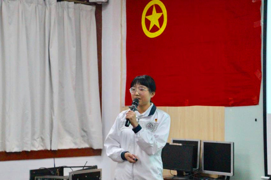 活动伊始,全体成员起立奏唱团歌,接着由参与决赛的六个团支书分别为现场观众展示了各团支部团日活动的特色和风采。如17级商务英语5团支部全体团员去往广州市越秀区参观革命红色基地,重温中共三大历史,坚定入团初心,同时提高了团支部的凝聚力;18级英语3团支部以“击鼓传花”小游戏述说新中国十大成就的形式开展此次团日活动,通过特色游戏激起了全体团员极高的热情,纷纷主动站起来讲述中华人民共和国成立七十年来的辉煌成就以及党的奋斗历程;19级德语3团支部“我给祖国送祝福”的特色环节很好地调动了班级团员的积极性,团员们手写对祖国祝福,并把一张张写满祝福的便利贴汇成一个“70”字样。随后由徐超做总结发言,他对各团支部的精彩表现给予了充分的肯定,同时也提出了三点建议:一是要注意团日活动的时间安排;二是团日设计的主题要突出;三是在活动前要对团日活动的内涵研究透彻,并且各团支部之间要相互学习,相互借鉴,做好对团员的思想引领工作。