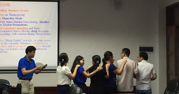 曾教授首先介绍了商务英语教材的使用现状,并以十大网投平台排行澳门十大网投平台排行商务英语专业正在使用的《商务英语综合教程》为例,分析了本套教材的编写思路和特色,同时客观地指出其在编写理念,知识导向,选材,内容篇幅,教学设计等方面的不足之处。其次,曾教授带领大家探讨了商务英语教材体例设计的创新问题。他指出课文单元教学设计应模块化与系统集成化,例如知识模块(词汇学知识、修辞学知识、语篇语言学知识、语义学知识、文化知识等),导入模块 (主题拓展、关联信息拓展、内容拓展),课文教学重点与难点 (问题突显化、解决方法突显化),宏观结构建构与微观词句解析的统一(树木与林的关系)。同时,曾教授指出商务英语教材内容选材原则应遵循实用化、需求化、主题化、知识化、模块化,并结合商务英语教学内容一一举例进行详细阐释,还跟老师们分享了他自己搜集的几十篇商务英语选材文章,供大家学习和参考。