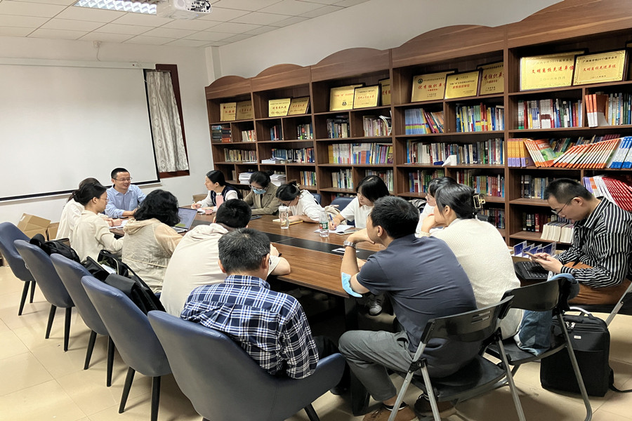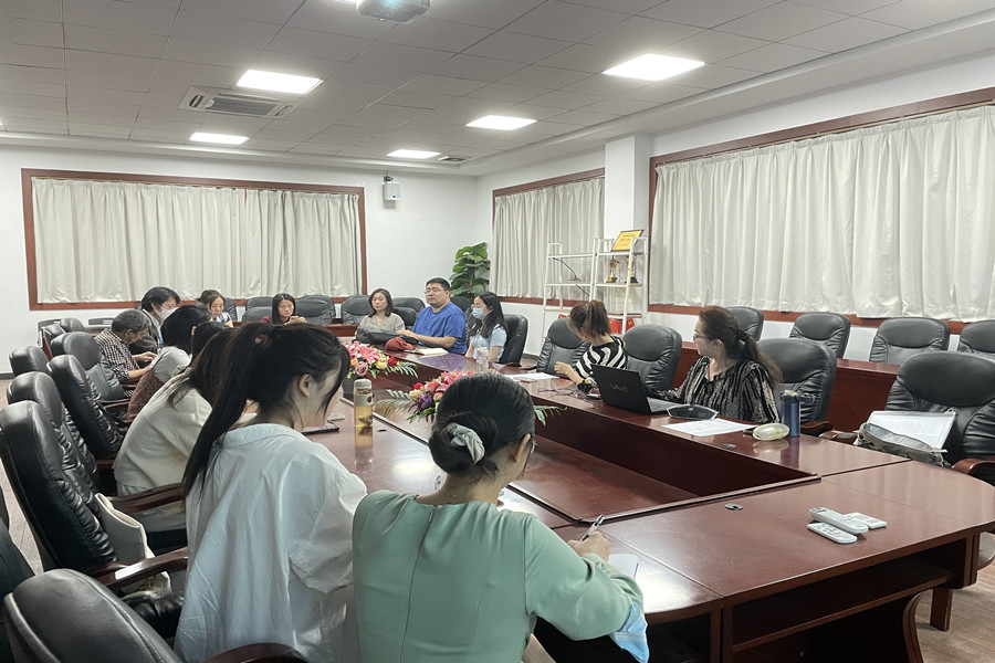 英语类专业毕业(设计)论文指导动员大会由袁鑫主持召开,全体英语类毕业论文指导教师参与此次动员大会。袁鑫介绍了本届毕业论文的总体情况,包括毕业生人数、指导教师人数和毕业论文工作的日程安排,梳理了毕业论文指导的重要时间节点。由于今年新教师较多,他就本科毕业论文写作的意义进行了系统阐述,并明确了指导教师的指导职责,做好指导策略,注重过程管理,以提高论文质量。其次,袁鑫就本次会议总结出“定范本、重选题、抓过程、要面谈、有耐心”五个论文指导策略,并对加强团队管理的论文指导方式也做了详细说明。最后,他强调做好教育部对本科毕业论文抽检工作的重要意义。教务员杨超就今年九月份教育部对2022届毕业论文抽检工作的细节和存在不足进行了简要的说明。