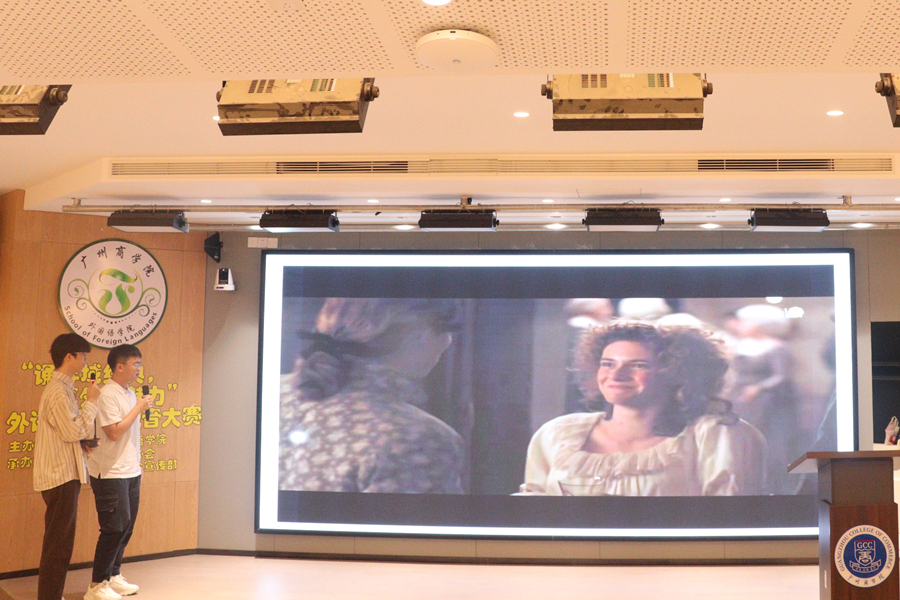 比赛伊始,主持人宣读比赛规则及奖项设置情况。在比赛中,选手们口齿清晰、发音标准、惟妙惟肖的配音,自信大方的形象赢得了评委老师和同学们的肯定和现场的阵阵掌声。