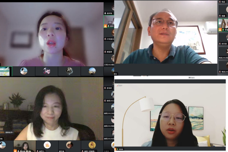 澳门十大网投平台排行于9月25-27日通过腾讯视频在线先后召开了五场毕业论文暨实习动员大会。澳门十大网投平台排行副院长袁鑫、商务英语系主任李望华、英语专业系主任程瑜瑜、德语专业系主任周昳旸、日语专业系主任杨烨以及教务员杨超参加会议,各会议由各系主任主持。此次大会的目的是为即将开始的毕业论文和毕业实习工作提供明确的指导,有效落实并确保毕业生工作顺利开展。