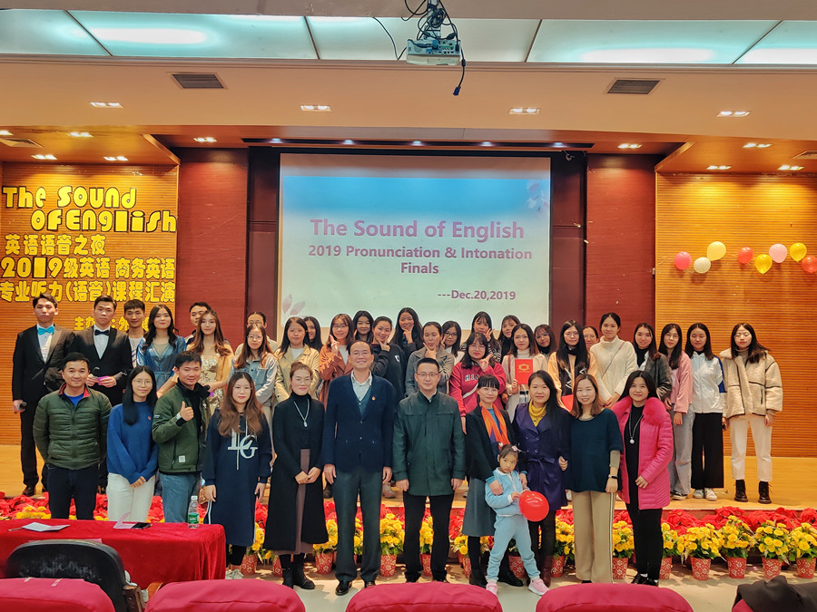 近日,2019级《(商务)英语听力Ⅰ》(语音)课程汇演---“英语语音之夜(The Sound of English)”在第一学术报告厅拉开帷幕,校友会办公室秘书长兼党群工作部副部长翁楚歆、校团委郑灿玲、澳门十大网投平台排行副院长袁鑫,党总支书记徐超及7名澳门十大网投平台排行专任教师以及2019级商务英语、英语专业414名学生,2016级33名助教出席了本次汇演活动。