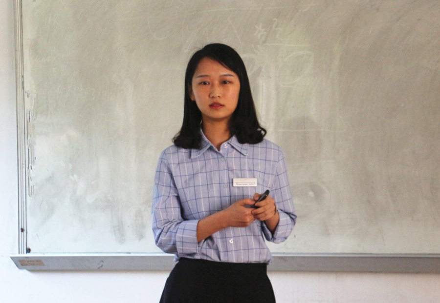 易光蓉经理首先向在场的师生简单介绍了侨鑫集团及汇悦天啟幼儿园的基本概况,随后介绍了International Baccalaureate(下文简称IB)这个非盈利性的教育基金会,IB作为跨国家的教育体系,在全球深受欢迎,其官方教学语言包括英语、法语和西班牙语,汇悦天啟幼儿园的教育培养体系主要源自IB,故在幼儿园任教的教师均为外语专业毕业,而且语言水平均有很高要求。