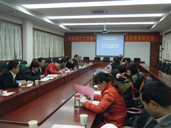 2011年1月15日,外语系在第二行政楼208会议室举行大学英语教学研讨会。华南农业大学澳门十大网投平台排行何高大院长、学院党委谭马利副书记、教学处陈雪莹副处长、评建办左灵芝副主任、外语系系领导及大学英语教研室全体老师参加了会议。本次会议的主题是“落实学院‘一体两翼’人才模式,深化大学英语教学改革,全面提高教学质量”。会议由胡光忠主任主持。