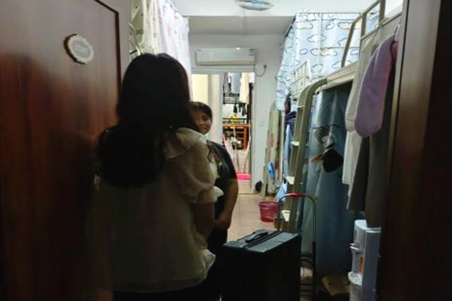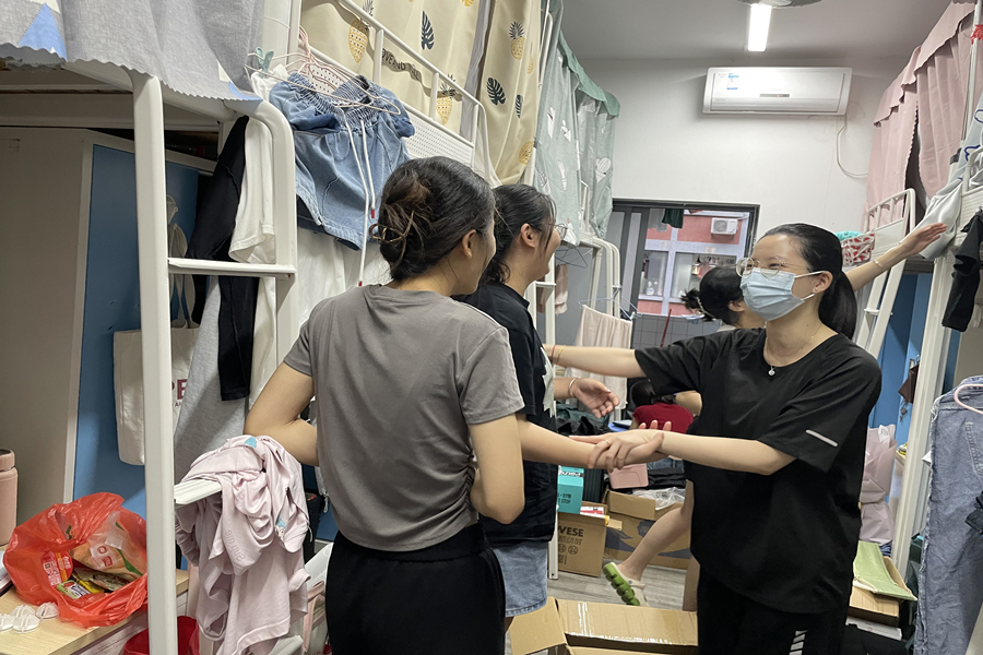陈丽珊(右一)走访宿舍