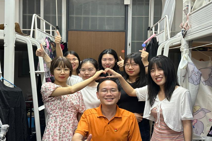 蔡柳渊(左一)走访宿舍