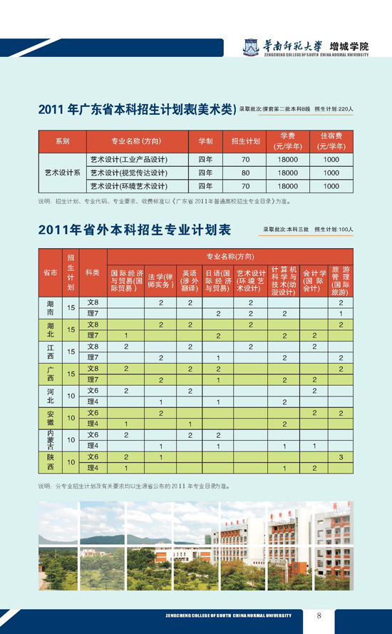 2011年广东省本科招生计划(美术类)及省外招生计划