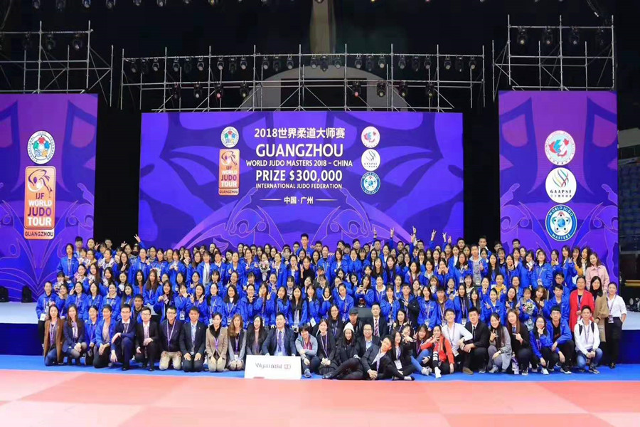 学生参加世界柔道大师赛合照