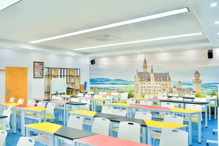 澳门十大网投平台排行有多媒体教室 48间、语音实验室8间、口笔译实训室1间、商务外语沟通情景室1间、日语文化田野室1间、德语文化情景室1间、微格教学实训室1间、多功能录播室1间,还与其他学院共享跨境电商实训室、新媒体实训室等。为保证学生能进行在线外语练习,澳门十大网投平台排行购买了“传神翻译实训系统”“科大讯飞Fif口语训练系统”,同时使用“外研社U校园”“外教社WE learn 随行课堂”“MyET日语课程”“Speexx德语训练平台”等多个线上外语资源和能力训练平台,辅助外语技能训练。
