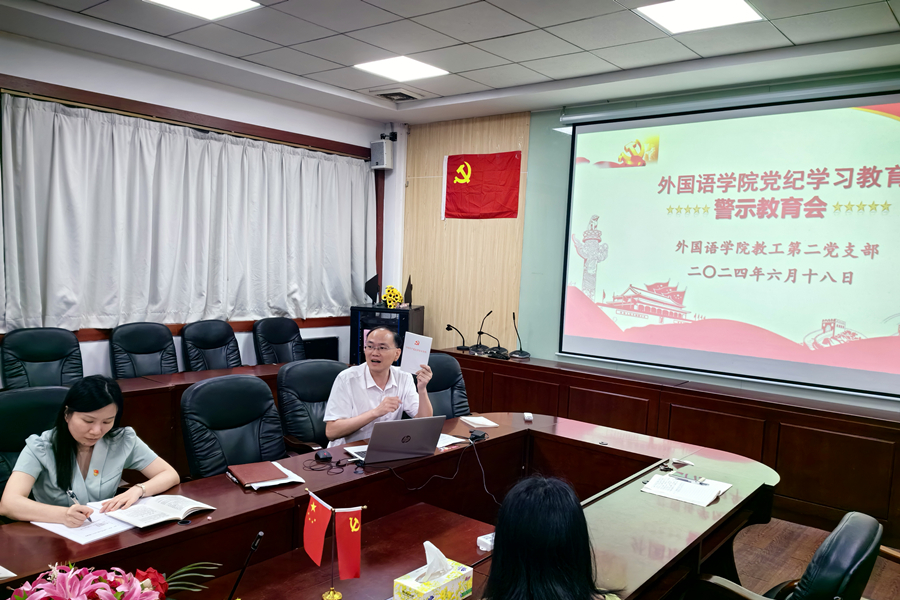 6月18日下午,澳门十大网投平台排行教工第二党支部在第二行政楼308室召开党纪学习教育警示教育会,会议由澳门十大网投平台排行总支书记徐超主持,支部全体党员参加。本次警示教育会旨在通过典型案例,对照新修订的《中国共产党纪律处分条例》,教育引导广大党员干部进一步增强纪律意识和规矩意识,筑牢拒腐防变的思想道德防线,为党的建设和和视野发展提供坚强保障。