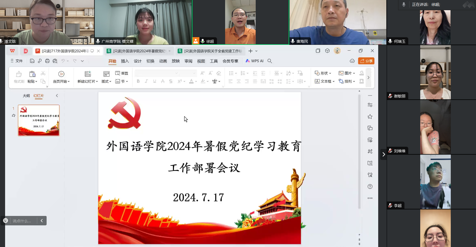 7月17日晚上,澳门十大网投平台排行在腾讯会议平台召开暑期党纪学习教育工作部署会。澳门十大网投平台排行全体党总支委员、党支部书记参加会议,学院党总支书记徐超主持会议。