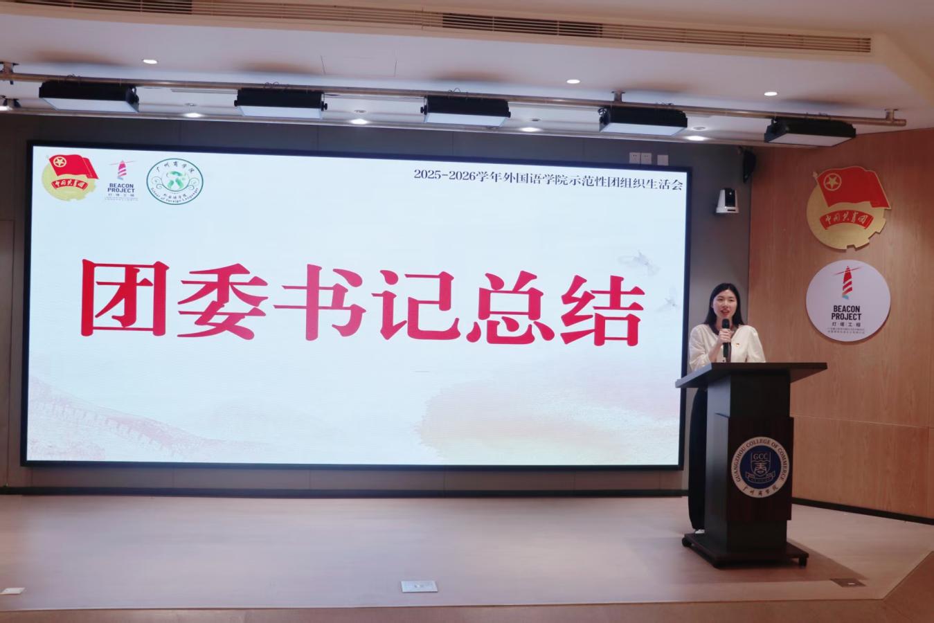 庄菲菲为本次活动作总结发言。她肯定了各优秀团支部在政治引领、支部建设、示范作用方面的亮眼表现。随后,她对团支部和全体团员提出三点要求:一是深化思想引领,坚定理想信念,练就过硬本领;二是提高支部建设质量,创新团建形式,增强组织凝聚力;三是强化使命担当,将个人成长与国家发展相结合,营造优良学风。她向团员青年寄予深厚期望,愿大家争做胸怀家国的追光者、深耕专业的实干者、传递温度的践行者,并希望各团支部以此次活动为契机,进一步加强组织建设,展现新时代青年良好风貌。