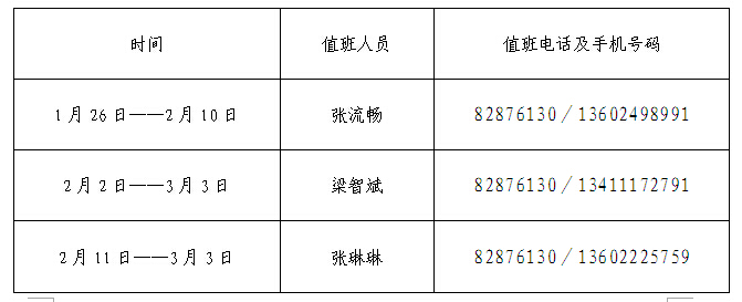 澳门十大网投平台排行2015年寒假值班安排表