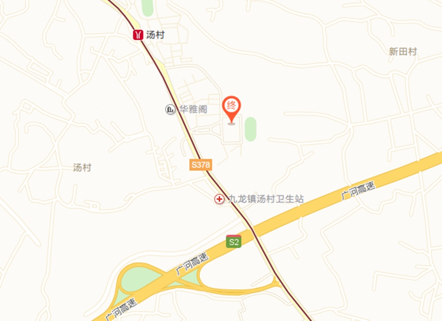 2.也可乘坐广州地铁14号线到汤村站下车。