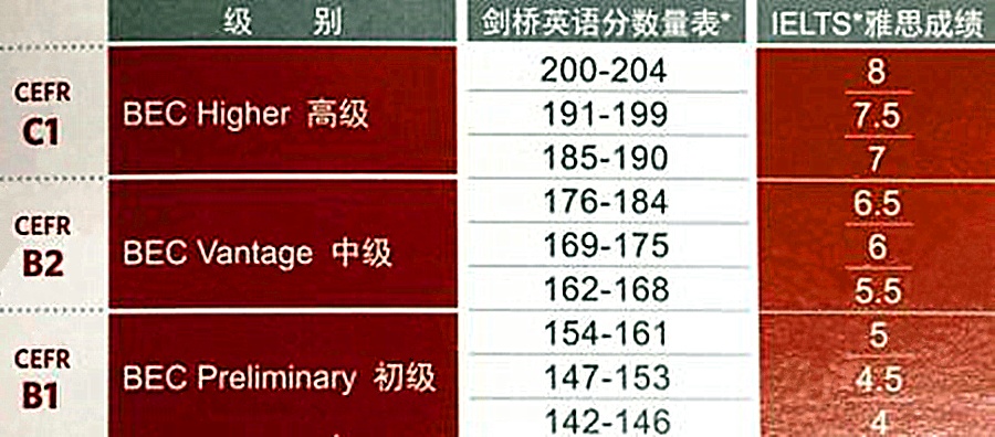剑桥商务英语(Business English Certificate,简称BEC)是专为职场或即将进入职场的英语学习者所设计的国际商务英语证书,旨在考查应试者在真实工作环境中的英语交流能力。自1993 年进入中国以来,BEC的权威性和高含金量使其成为中国影响力最大的职业类英语证书,是“职场英语”、“商务英语”的代名词,受众多知名企业和国际高等院校广泛认可且终身有效。