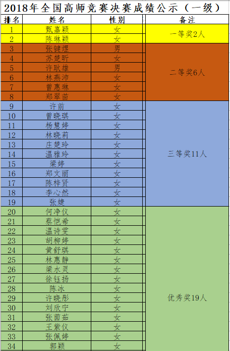 请以下获奖的同学于12月25日至28日到第二行政楼315办公室找值班助理领取2018年全国高师竞赛证书,领取证书时请带上学生证以便核查,不代领。具体领取时间为8:30-11:30,14:30-17:30,敬请互相告知。