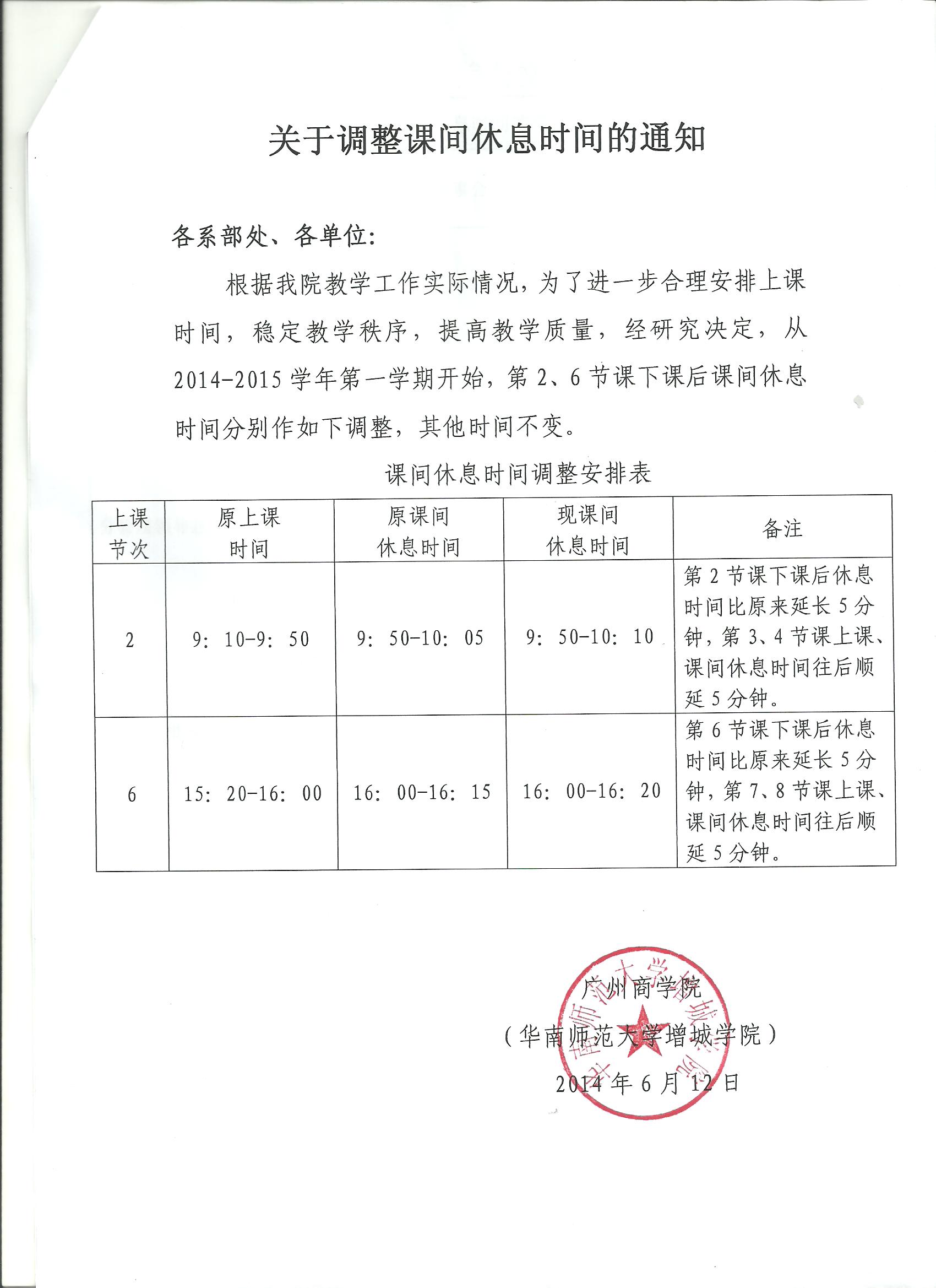 关于调整课间休息时间的通知